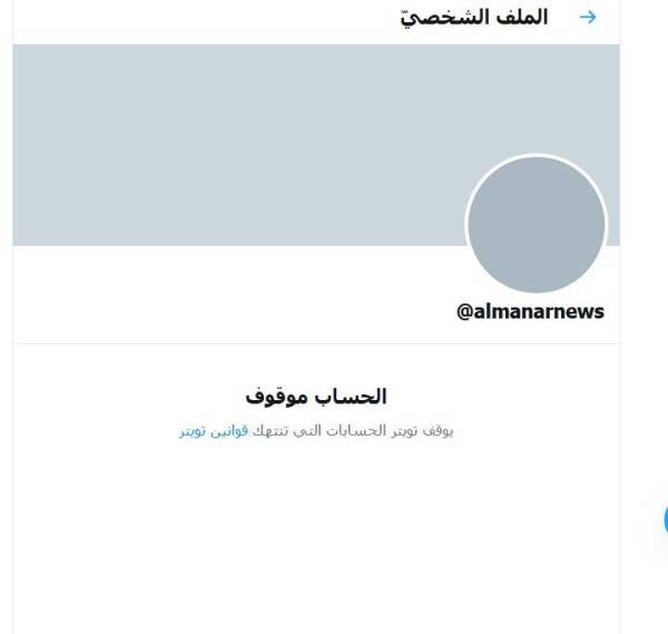 أغلقت إدارة شركة «تويتر»، السبت، حساب قناة المنار الرسمي التابعة لميليشيا حزب الله اللبناني، حسب ما ذكره موقع العربية نت.