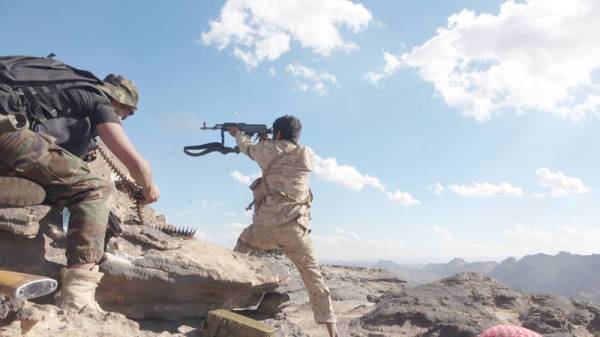 مقاتلان من الجيش اليمني خلال مواجهات مع الحوثي في شرق