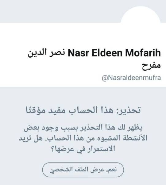 وكانت إدارة «تويتر» قد أوقفت حساب وزير الشؤون الدينية والأوقاف السوداني، واضعة لافتة على الحساب الرسمي للوزير تفيد بأن هذا التحذير بسبب وجود بعض الأنشطة المشبوهة.