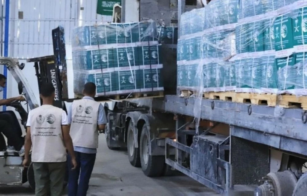 The King Salman Humanitarian Aid and Relief Center delivered a new batch of food aid yesterday to the Saudi Center for Culture and Heritage, the implementing partner of the center in the Gaza Strip, for the eastern region of Deir al-Balah in the central sector, as part of the Saudi popular campaign to aid the Palestinian people.