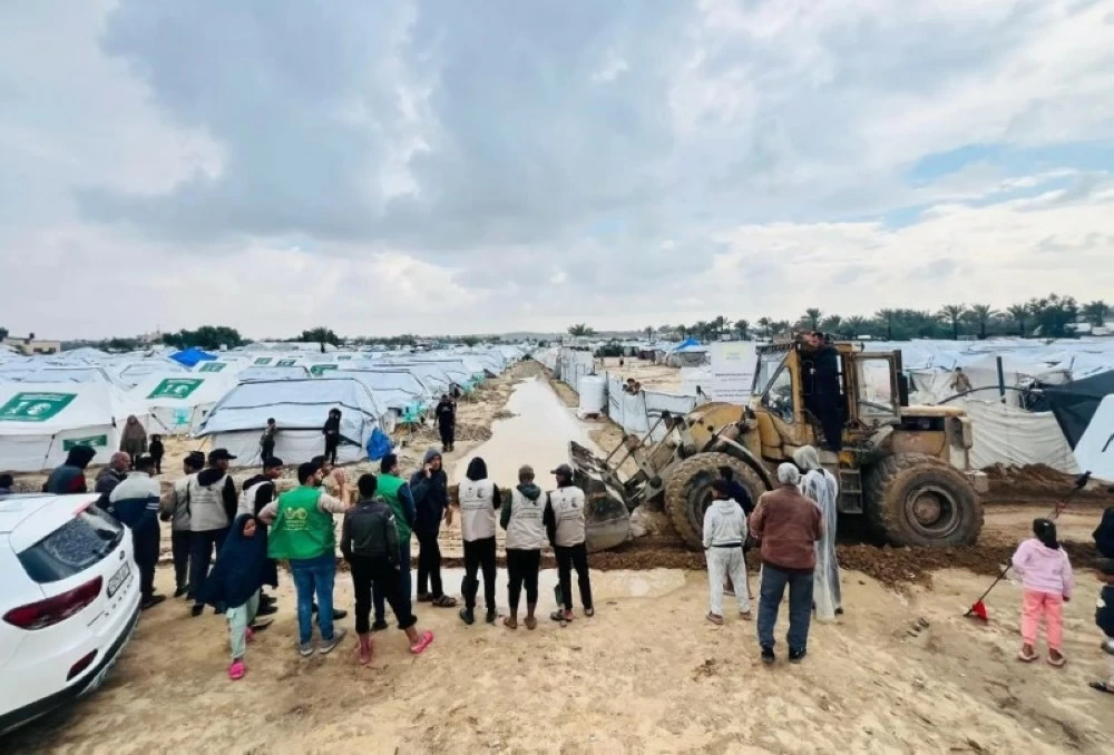 The King Salman Humanitarian Aid and Relief Center has implemented urgent field relief interventions for displaced families in camps in southern Gaza Strip, following the damage inflicted on tents and the belongings of the displaced due to the recent weather system that hit the region, through its implementing partner, the Saudi Center for Culture and Heritage.