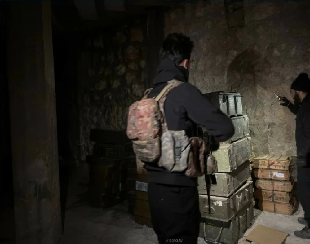 The Syrian Ministry of Interior announced the seizure of a warehouse containing various weapons and ammunition belonging to the SDF in the city of Deir Hafir in the eastern Aleppo countryside during security sweep operations conducted by internal security forces in the neighborhoods of the city after securing it as part of the ministry's ongoing efforts to maintain security and stability.