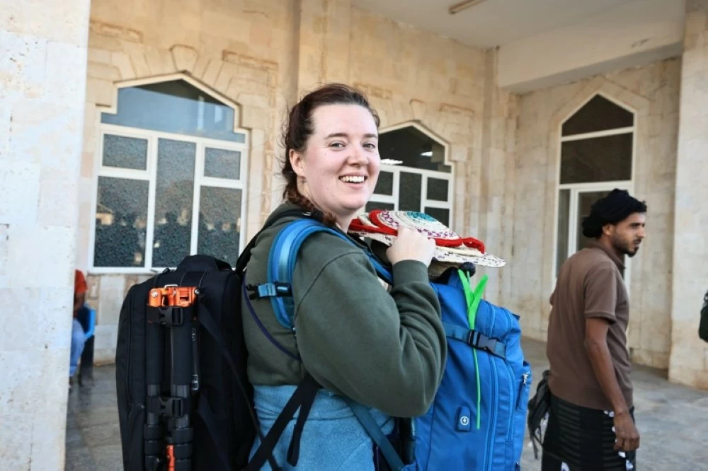 The moment of the flight's arrival was witnessed by "Okaz," where the plane was showered with water in celebration of its arrival. The reception was accompanied by a lineup of several officials in the governorate, the director of the Saudi Program for Development and Reconstruction of Yemen in the governorate, and a number of citizens, including girls carrying flowers.