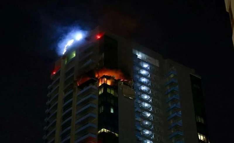 وأوضح المكتب أن اعتراض صاروخ إيراني أدى إلى سقوط شظايا، مما تسبب في نشوب حريق في الواجهة الخارجية لفندق «برج العرب» الشهير.