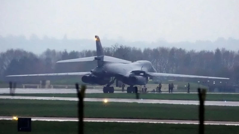 وهبطت القاذفة الأمريكية من طراز B‑1B Lancer مساء الجمعة في قاعدة سلاح الجو الملكي البريطاني في فيرفورد بغلوسترشاير، وهي قاعدة استخدمتها الولايات المتحدة سابقاً لتنفيذ عمليات قصف بعيدة المدى.