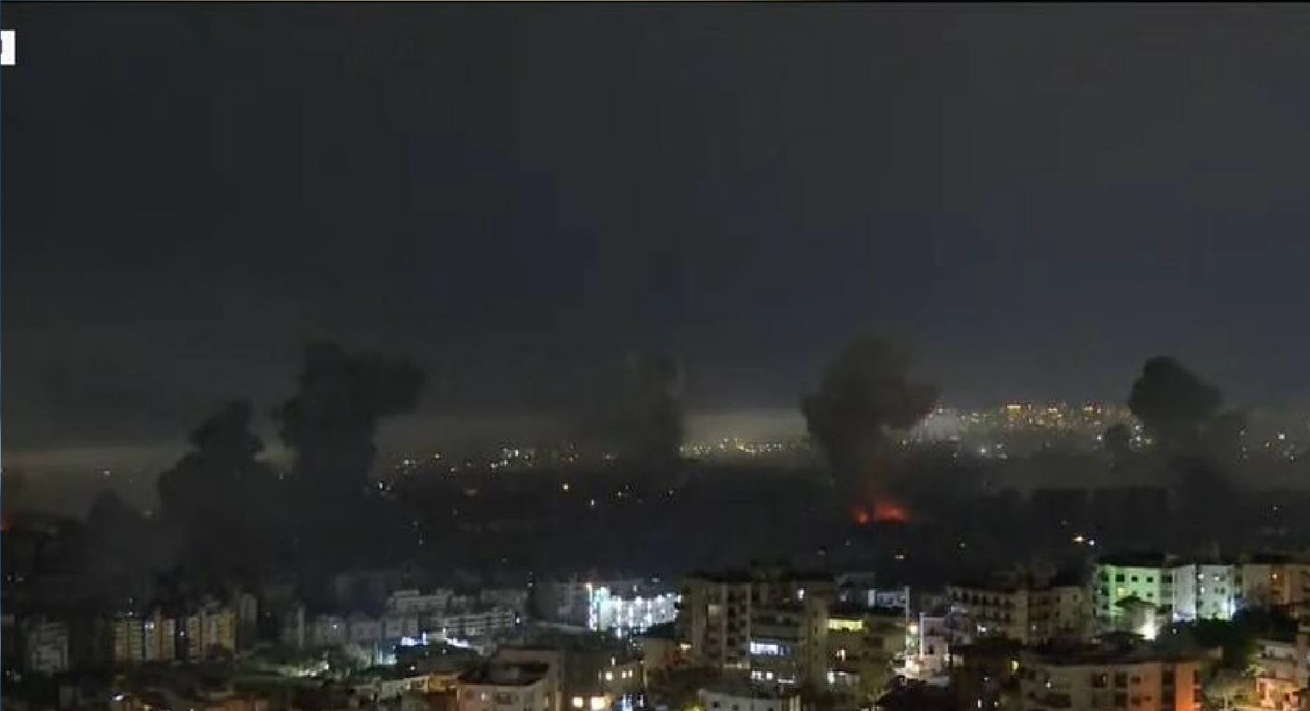 فيما أكد المتحدث باسم الجيش الإسرائيلي بدء تنفيذ موجة واسعة من الهجمات، مبيناً أنه تم استهداف بنى تحتية تابعة لحزب الله في منطقة الضاحية في بيروت.