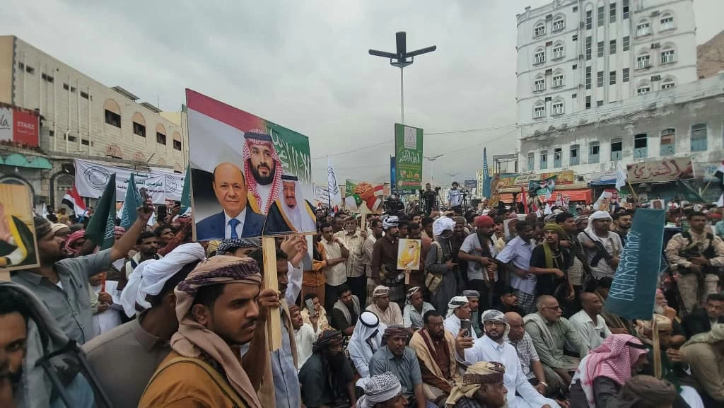 Demonstrators in Al-Ghaydah, the capital of Al-Mahrah province, and in the cities of Mukalla and Sayoun in Hadramaut raised pictures of the Saudi leadership, affirming their full solidarity with Saudi Arabia and the brotherly Arab countries, and condemning the Iranian aggressions that target the security and stability of the region.