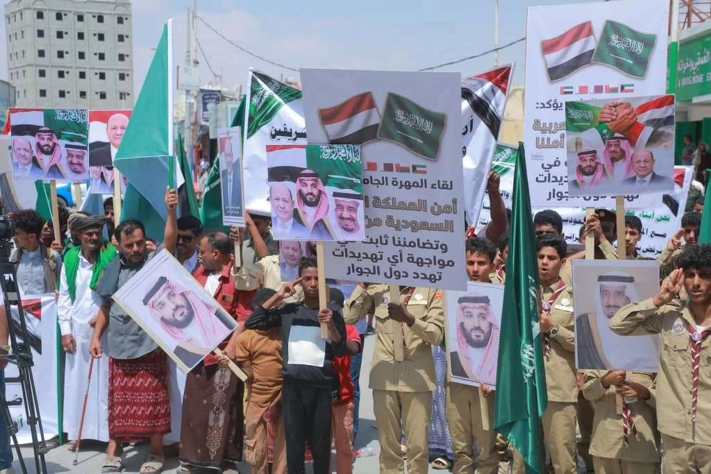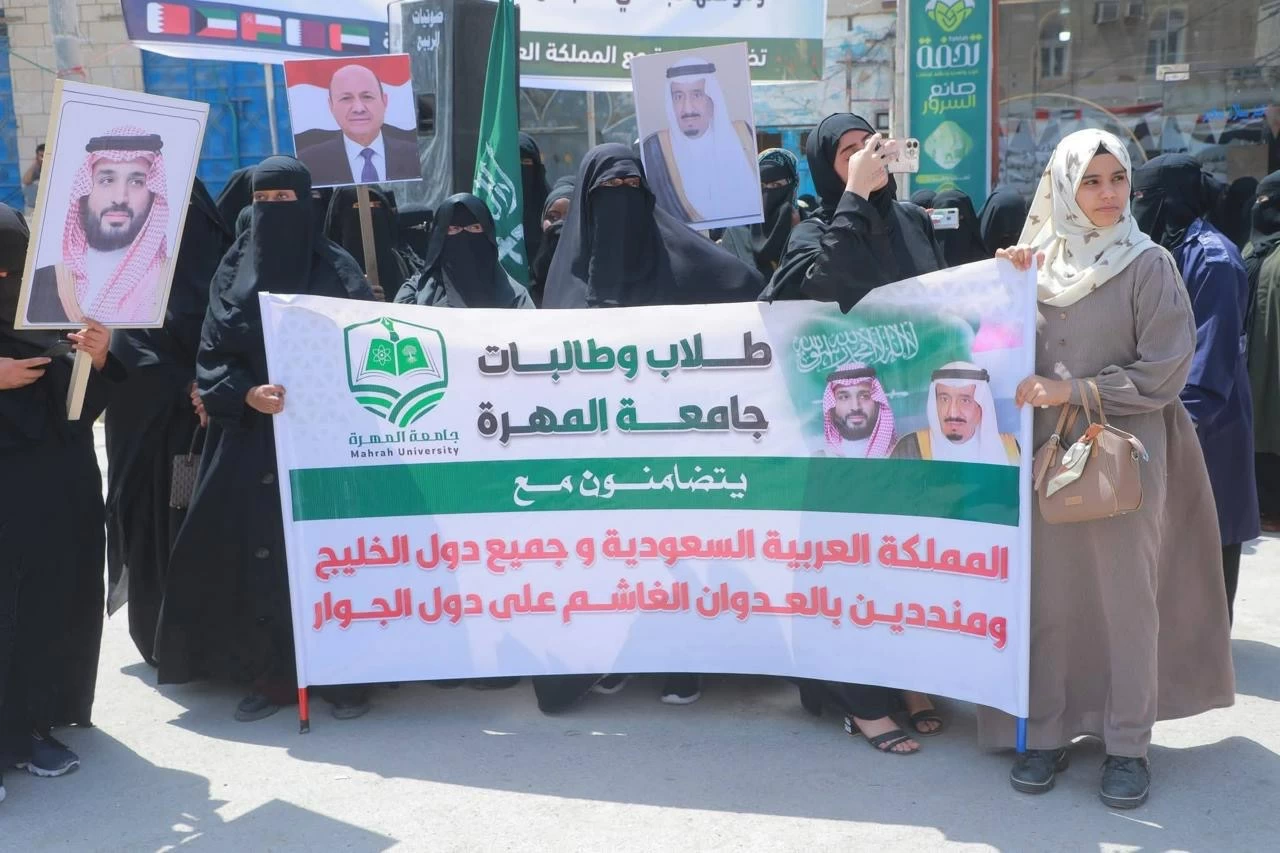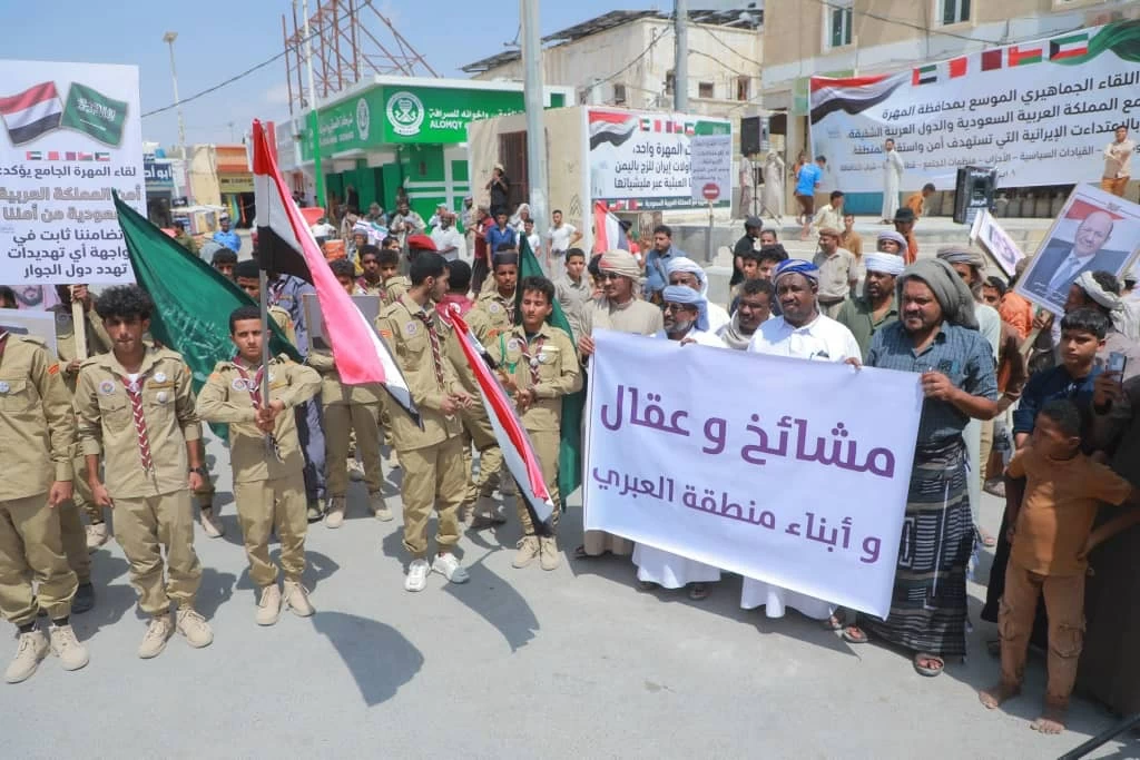 The city of Mukalla in the Hadhramaut governorate of Yemen witnessed a massive public rally in solidarity with Saudi Arabia and the Arab countries, in response to the repeated Iranian attacks targeting the security and stability of the region. The city of Mukalla saw a significant turnout from all areas and districts of Hadhramaut governorate to participate in the protest. Participants in the mass rally in the Al-Mahra governorate of Yemen, which included political leaders, social figures, and representatives from civil society organizations, as well as a large crowd of citizens, raised the flags of the Republic of Yemen and the Kingdom of Saudi Arabia, along with solidarity banners expressing their unwavering support for Saudi Arabia, Gulf countries, and Arab nations. They affirmed the complete solidarity of the people of Al-Mahra governorate with Saudi Arabia, the Gulf Cooperation Council countries, and the Hashemite Kingdom of Jordan, based on the bonds of brotherhood and shared destiny, considering this an integral part of Yemen's security and a commitment to the security and stability of the region. They also expressed their condemnation of the Iranian attacks targeting vital and civilian facilities, which threaten the security and stability of the region. They emphasized their rejection of the use of Yemeni territory to harm neighboring countries or to drag Yemen into conflicts that do not serve the interests of the Yemeni people. They called for strengthening unity in the face of challenges. These rallies and mass marches in Hadhramaut and Al-Mahra governorates come after other massive marches in Marib and Taiz governorates to denounce the Iranian aggression against Saudi Arabia, the Gulf Cooperation Council countries, and Jordan, to reaffirm Yemen's steadfast position in standing by them, and to express the gratitude and appreciation that Yemenis hold for Saudi Arabia, which has always provided support to Yemen and consistently stood by the Yemenis.
