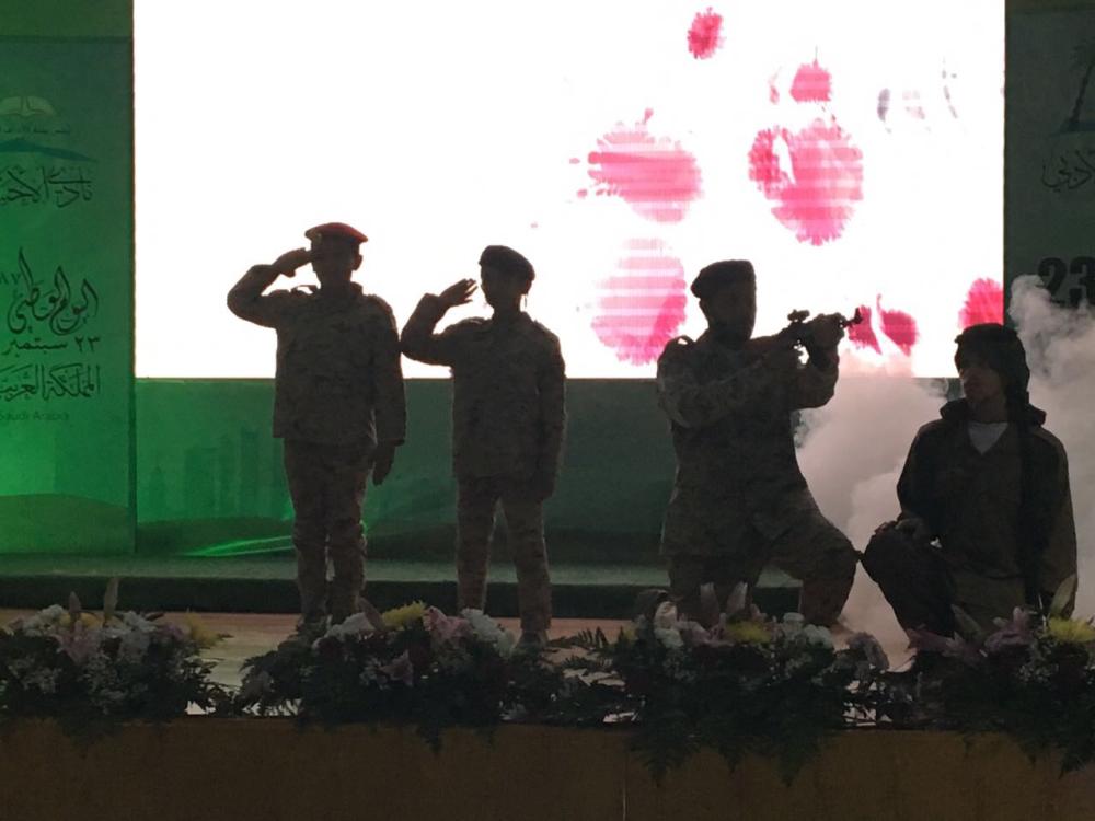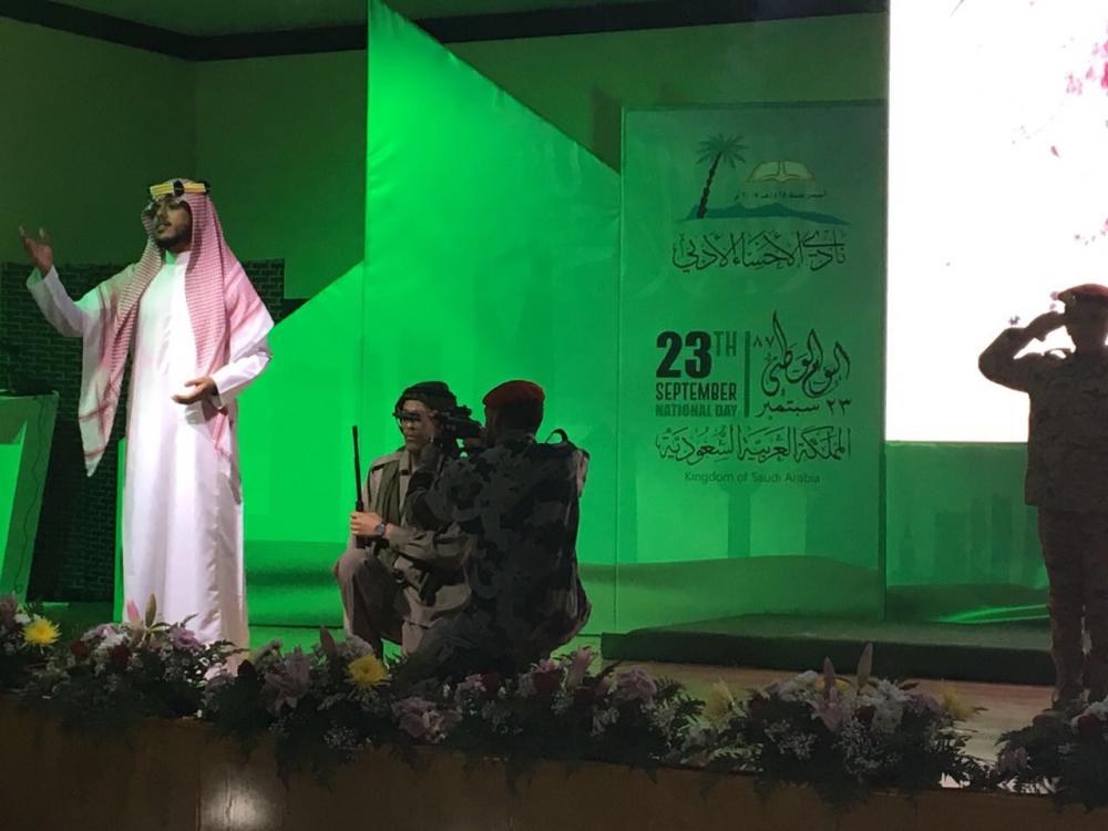 وتخللت الاحتفالية، قصيدة للشاعر علي الشعير بعنوان «وطن بألوية الحزم»، عقب ذلك أوبريت «وطن الأمجاد» من تأليف الشاعرة بشائر محمد، وإخراج خالد الخميس، وإشراف عام النادي.
