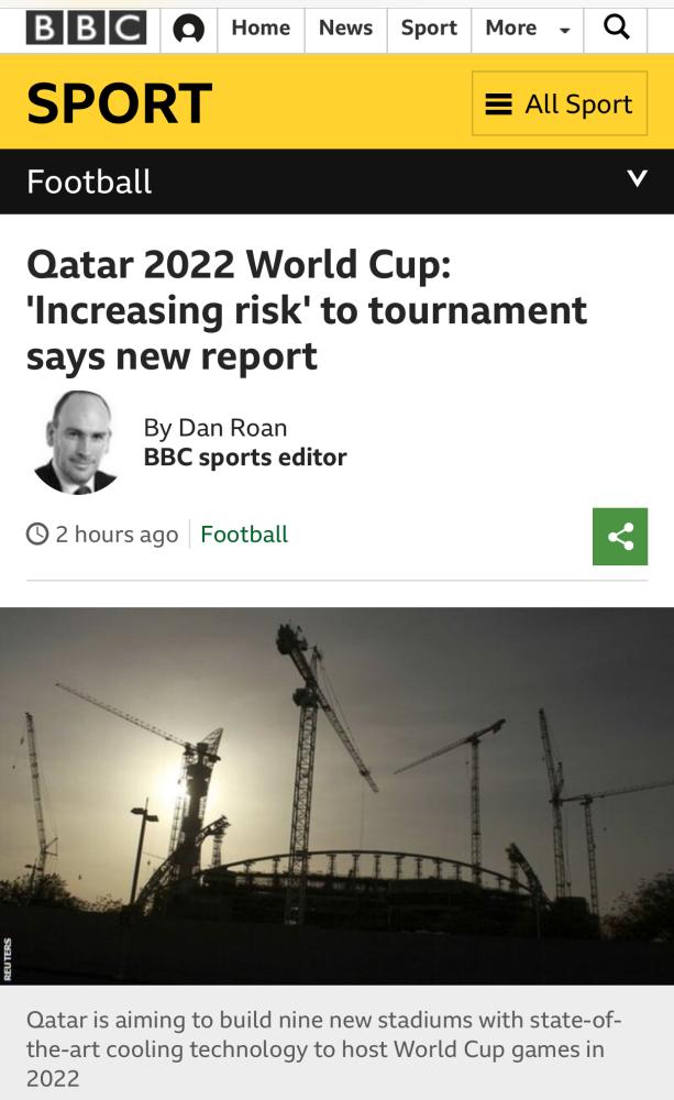 وأشار التقرير إلى أن إلغاء كأس العالم في قطر لن يكون مفاجئا، وأن المقاولين سيتورطون بسبب الوضع المحفوف بالمخاطر الذي قد لا يمكن حله بسهولة.