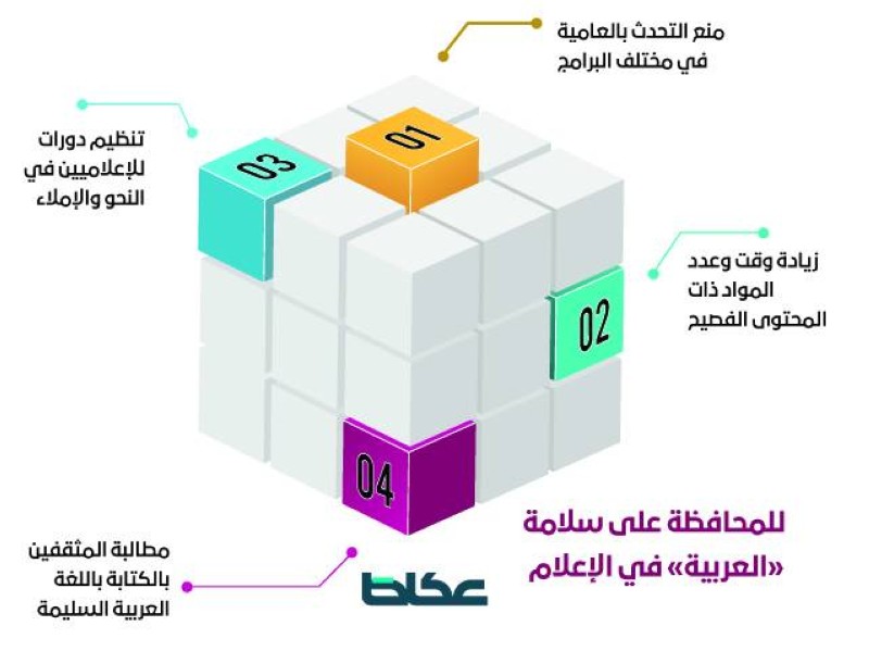 ولكي نحافظ على اللغة العربية وحتى لا تطغى «العامية» على لغة هي الأداة الرئيسية التي تحفظ هويتنا وثقافتنا لا بد لنا أن نحميها من معاول الهدم، المتمثلة في استخدام كثير من المفردات العامية ومصطلحات أجنبية أثناء الكتابة في وسائل التواصل الاجتماعي مثل؛ «تويتر» و«فيسبوك»، واتخاذ قرار حازم من المسؤولين عن الإعلام، لمنع التحدث بالعامية في البرامج الإعلامية، وزيادة عدد ووقت البرامج ذات المحتوى العربي الفصيح، وكذلك إعداد برامج تُعنى بقواعد اللغة العربية، مع تضمينها قصائد ونصوصاً أدبية، تظهر جمال اللغة، وتنظيم دورات متواصلة للإعلاميين، خاصة المذيعين والمحررين، لتعزيز قدراتهم النحوية، وأن يحترم المثقفون العرب لغتهم، فلا يتنازلون عن الكتابة بها، والتكريس للمحافظة عليها، ورفع ذائقة الأجيال حيالها.