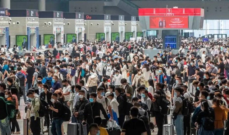 زحام وتدافع في محطة القطارات في جينغجو بالصين. (وكالات)