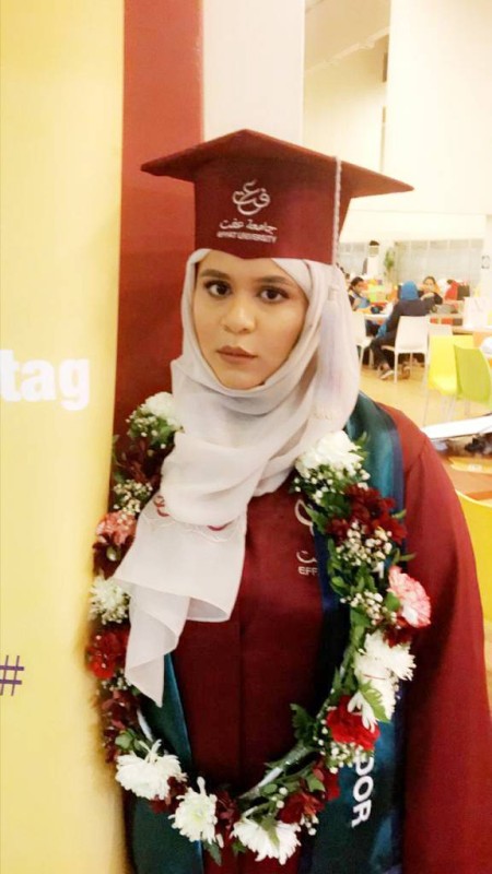 تدرك خريجة ماجستير الترجمة، أحلام الأحمري، أن مؤهلها الأكاديمي الذي حصلت عليه أخيرا من جامعة عفت ليس نهاية المطاف، بل بداية للحاق بعصر التمكين الذي وجدت فيها المرأة نفسها أمام تحدٍ حقيقي يضعها في مكانتها المستحقة وموقعها الملائم لقدراتها.