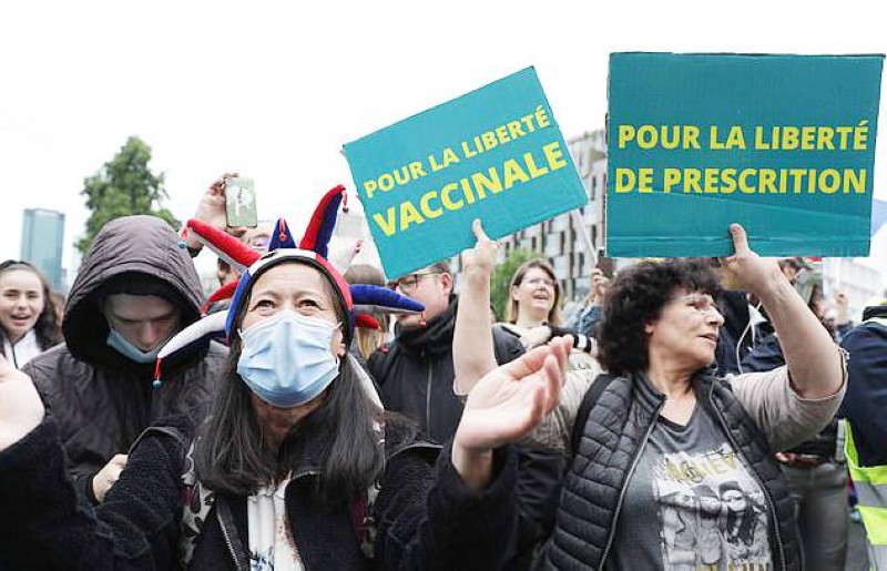 أرشيفية للتظاهرات الفرنسية المناوئة لشهادة التحصين عند فرضها في أغسطس الماضي. (وكالات)