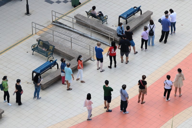 طابور انتظار إبرة اللقاح في سنغافورة. (وكالات)