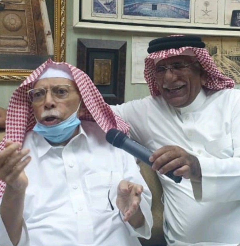 الإذاعي فريد مخلص أثناء استضافته مؤذن المسجد الحرام الشيخ علي ملا.