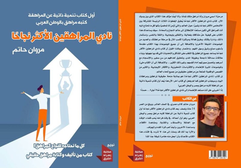 صدر حديثاً كتاب «نادي المراهقين الأكثر نجاحاً» للكاتب اليافع مروان حاتم، الذي يبلغ من العمر 15 عاماً، والكتاب يشارك بالدورة الرابعة والخمسين لمعرض القاهرة الدولي للكتاب 2023.
