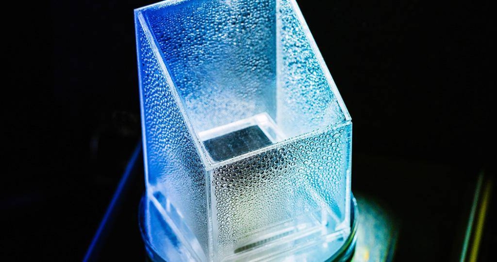 يتكوَّن المبخر الجديد الذي صنعه الفريق من مكعبٍ بلاستيكي بمقياس سنتيمتر واحد، يحتوي على عددٍ من أغشية الألياف الزجاجية التي هي عبارة عن مواد رقيقة تستخدم عادةً في التقطير، ويعمل الغشاء المحاذي أفقياً، والمغطى بأنابيب الكربون النانوية كطبقةٍ ماصةٍ للضوء على السطح المكعب العلوي. من أسفله، تعملُ سلسلة من الأغشية المثبتة عمودياً، أو المُسماة «جسور نقل الكتلة»، على فصل ماص الطاقة الشمسية عن تراكم المياه المالحة.
