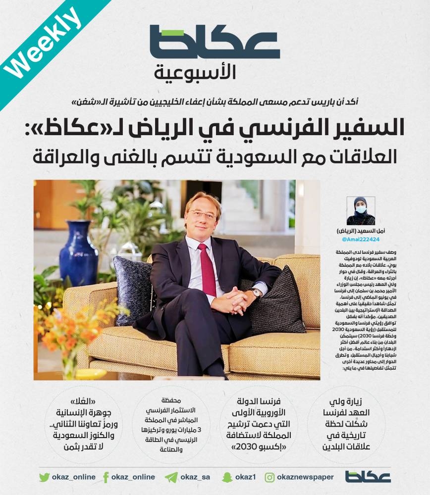 السفير الفرنسي في الرياض لـ«عكاظ»: العلاقات مع السعودية تتسم بالغنى والعراقة