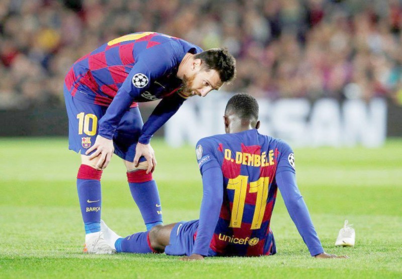قائد برشلونة ميسي يطمئن على إصابة زميله الفرنسي عثمان ديمبلي