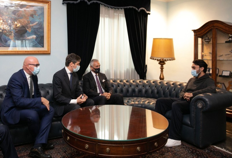 وكان في استقبالهما رئيس الاتحاد الإيطالي لكرة القدم جابريال جرافينا، وأمين عام الاتحاد الايطالي لكرة القدم ماركو برونيللي، وعدد من مسؤولي الاتحاد، وأعضاء السفارة السعودية في روما.