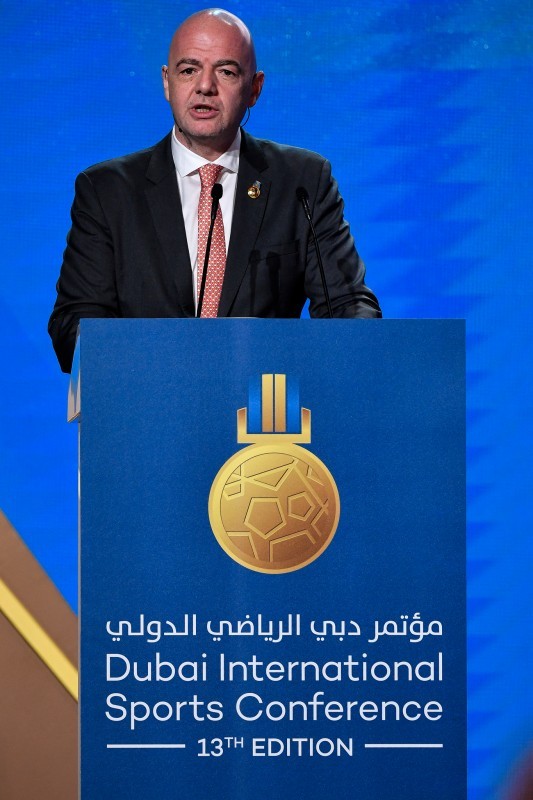 جياني انفانتينو يخاطب العالم من خلال مؤتمر دبي الرياضي الدولي.