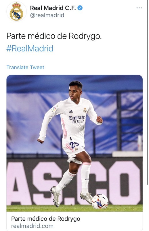 لتُسارع الصحف الإسبانية كافة إلى نفي خبر إصابة رودريغو، وتؤكد أن موقع نادي ريال مدريد تعرض للاختراق قبل أن يتم حذف الخبر من موقع النادي.
