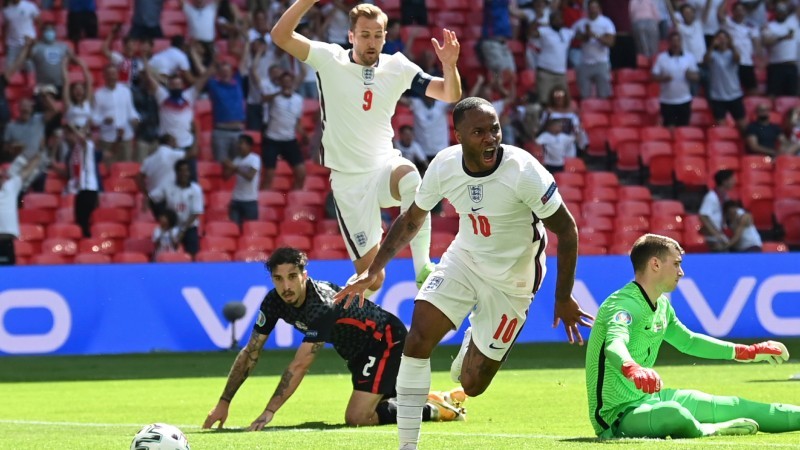 وبمؤازرة الجمهور الحاضر بأعداد محدودة في مدرجات «ويمبلي» الذي يستضيف مباريات إنجلترا في دور المجموعات من النسخة الحالية الموزعة مبارياتها على 11 مدينة أوروبية احتفالاً بالذكرى الـ60 لانطلاقها، أهدى ستيرلينغ بلاده النقاط الثلاث بهدف في الدقيقة 57، وذلك في أول ظهور لها على أرضها ضمن بطولة كبرى منذ نهائيات كأس أوروبا 1996 حين وصلت إلى نصف النهائي.