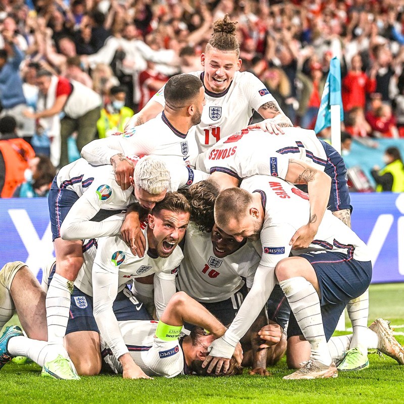 تأهل منتخب إنجلترا لنهائي بطولة أوروبا يورو 2020 بعد تجاوزه بصعوبة لمنتخب الدانمارك بهدفين لهدف بعد أن امتدت المباراة لأشواط إضافية وذلك في اللقاء الذي جمع بينهما في الدور نصف النهائي للبطولة والذي أقيم على استاد ويمبلي في العاصمة الإنجليزية لندن.