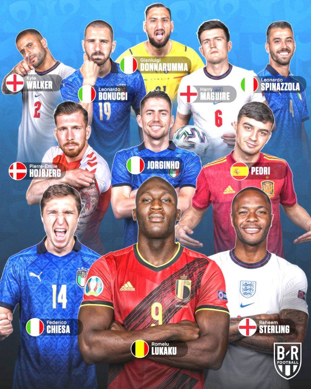 ودخل التشكيلة المثالية أيضا لاعب وسط إسبانيا بيدري، الفائز بجائزة أفضل لاعب شاب في البطولة، إلى جانب الدنماركي بيير إميل هويبيرغ، والبلجيكي روميلو لوكاكو. وسجل سترلينغ ثلاثة أهداف مع إنجلترا، بينما أحرز لوكاكو أربعة أهداف مع بلجيكا، التي خرجت من دور الثمانية على يد إيطاليا.