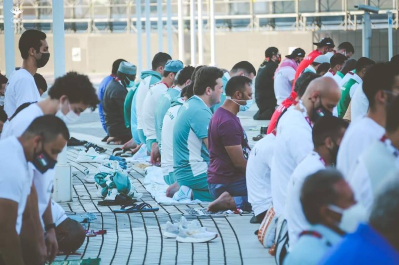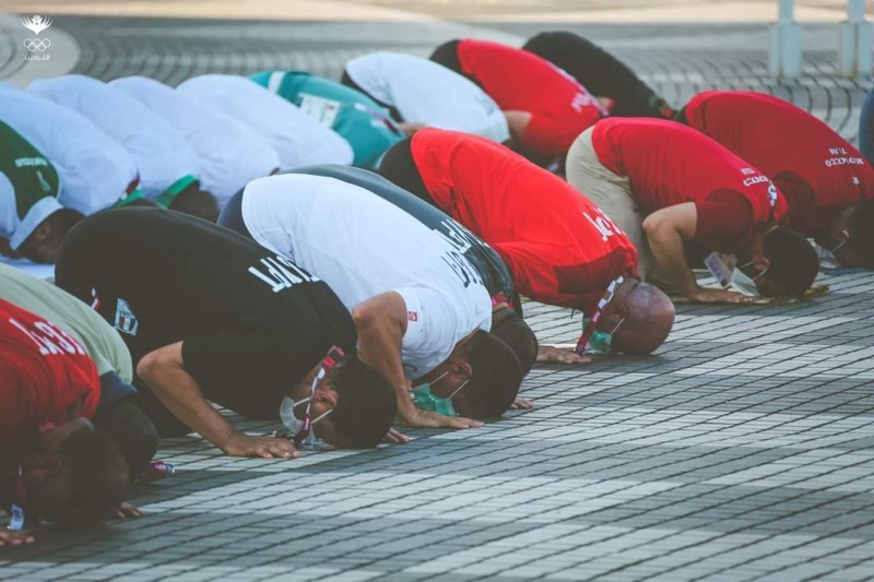 واحتفى الرياضيون المسلمون بأجواء وفرحة العيد بالسلام على بعضهم البعض وتبادل صادق الأمنيات للنجاح في الحدث الرياضي التاريخي الضخم، الذي ينطلق يوم (الجمعة)، وسط احترازات شديدة.