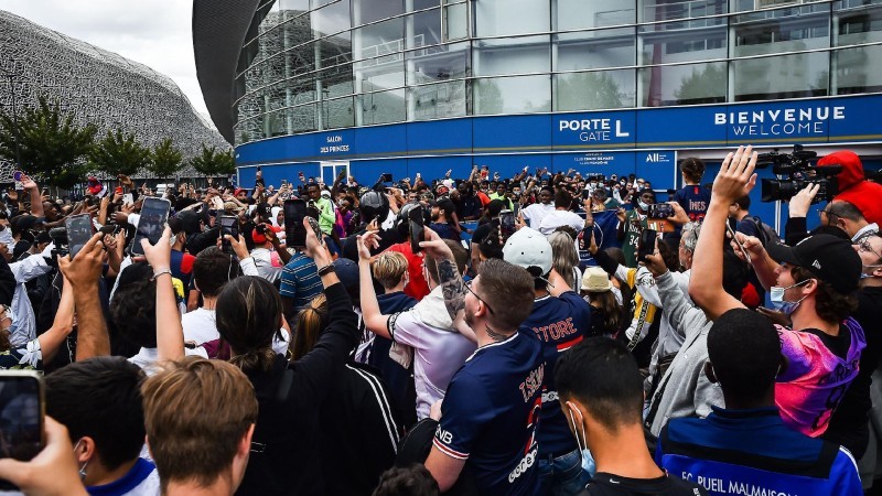 وهبطت طائرة ميسي الخاصة في مطار لو بورجيه في ضواحي العاصمة الفرنسية، واحتشدت جماهير باريس سان جيرمان في المطار وهتفت «ميسي ميسي» للترحيب باللاعب الأرجنتيني.