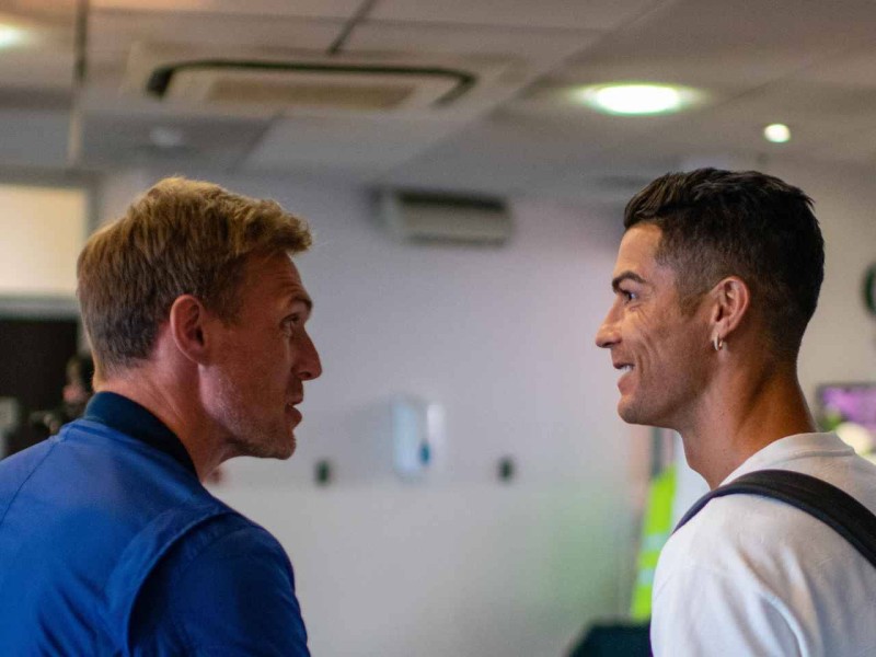 كان في استقبال كريستيانو زميله السابق دارين فليتشر المدير الفني للنادي. (manutd)