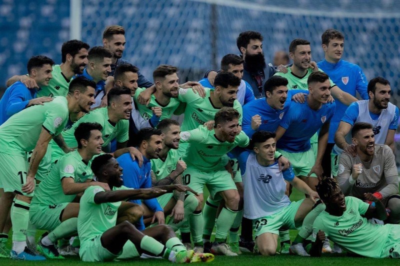فرحة لاعبي أتليتك بلباو بعد فوزهم على أتليتكو مدريد في نصف نهائي كأس السوبر الإسباني.