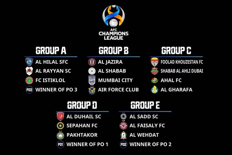 • المجموعة الخامسة: السد (قطر)، الفيصلي (السعودية)، الوحدات (الأردن)، الفائز من الدور التمهيدي 2.