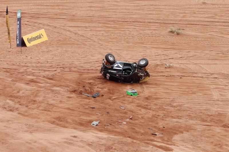 تعرضت المتسابقة كريستين زونكا من فريق فيلوتشي رايسينغ خلال الحصة التأهيلية الأولى من سباق إكستريم إي نيوم لحادِث انقلاب بعد أن فقدت السيطرة على مركبتها.