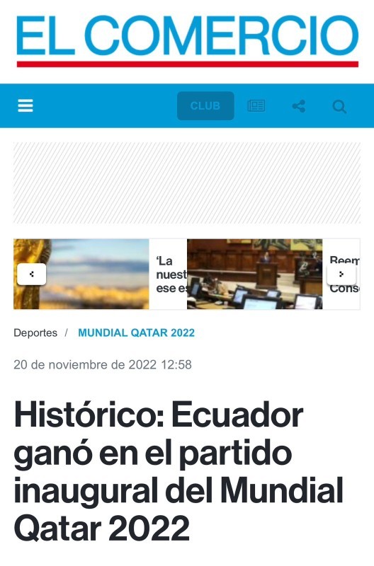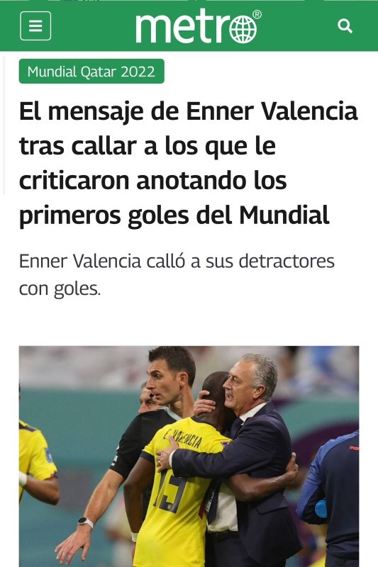 وعن الانتقادات التي طالته خلال الفترة الماضية قال إينير: «لم أتأثر بالنقد، لأنه عندما تستمع إلى الصحافة الإكوادورية فإنك ترى الأشياء السلبية فقط، فنحن نحاول استبعاد ذلك، وكنا نركز على عملنا من يوم لآخر، شكراً للجهاز الفني ولزملائي الذين حققوا حلمي بأن أحرز هدفاً في افتتاحية المونديال».