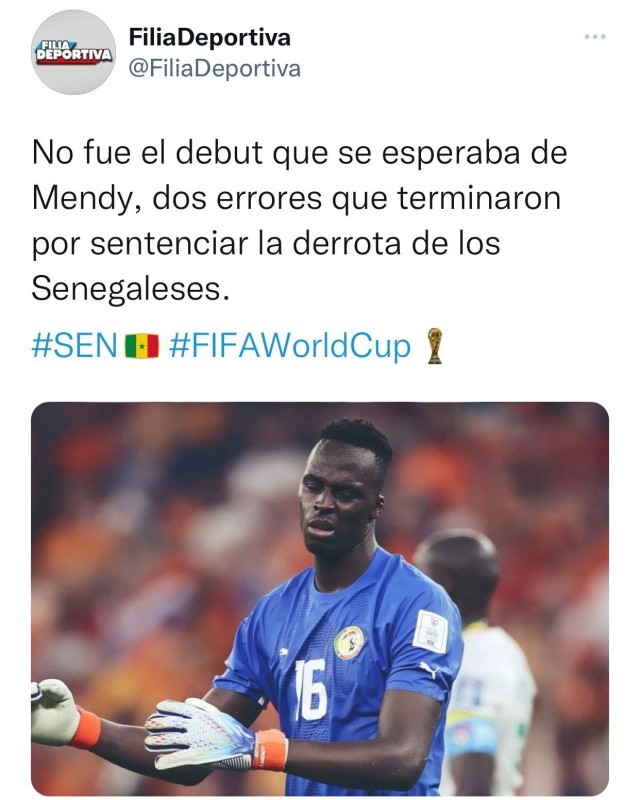 شنّت صحف وجماهير سنغالية عبر «تويتر» هجوماً على حارس منتخب بلادهم الدولي إدوارد ميندي (30 عاماً) حامي عرين تشيلسي الإنجليزي، بعد تسببه بهدفي هولندا ضمن افتتاحية مباريات المنتخبين التي أقيمت على استاد الثمامة بالعاصمة القطرية (الدوحة).