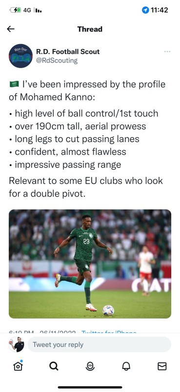 أما أحد كشافي نادي تيفنتي الهولندي فبث تغريدة عبر «تويتر» جاء نصها كالتالي «جودة عالية في الكنترول واللمسة الأولى، أطول من 190 سم، قوي بالكرات الهوائية، يملك رجلين طويلتين تعترضان التمريرات، واثق، خالٍ من العيوب تقريباً، جودة تمريرات رائعة، مناسب للأندية الأوروبية التي تبحث عن محور ثانٍ».