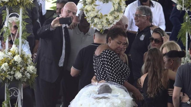 والتقط إنفانتينو الصورة بهاتفه النقال خلال وجوده بالقرب من جثمان بيليه في وسط ملعب نادي سانتوس البرازيلي، حيث سُجي الجثمان لإتاحة الفرصة أمام مشجعي وعشاق بيليه وكرة القدم لإلقاء «النظرة الأخيرة» عليه قبل مواراته الثرى، الثلاثاء.