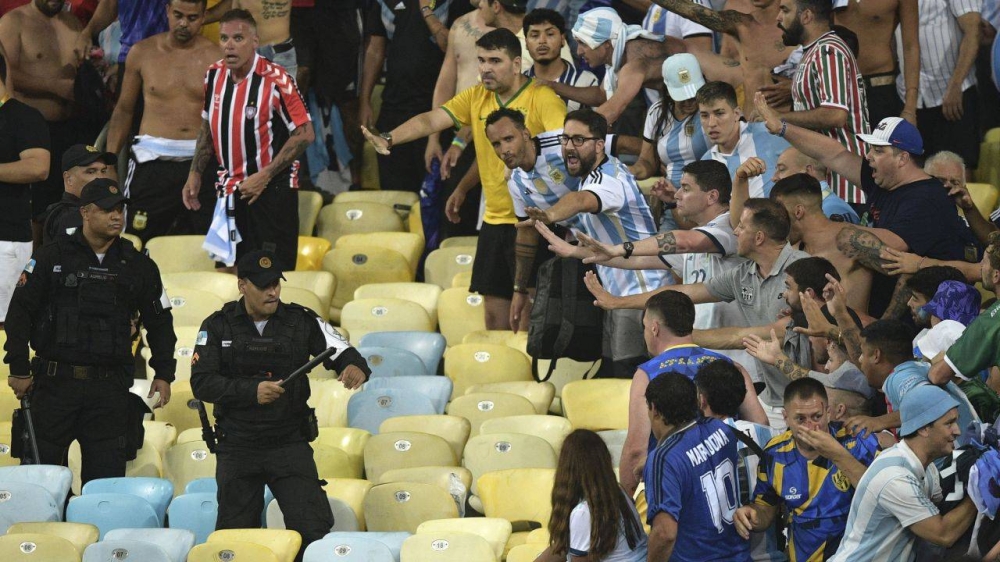 واشتبك مشجعو البرازيل والأرجنتين خلف المرمى أثناء النشيدين الوطنيين، ما دفع الشرطة إلى مهاجمة المجموعة المسافرة من الأرجنتين بالهراوات.