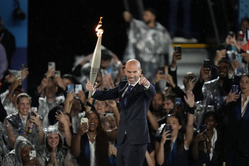 أسطورة كرة القدم ورمز الرياضة الفرنسية زين الدين زيدان حاملاً الشعلة الأولمبية في نهر السين، بعد أن شارك في حفلة الافتتاح كمنقذ للشعلة الأولمبية بعد أن انتقلت بالخطأ لملعب فرنسا الدولي، لكن زيزو ظهر برمزيته المعتادة في فرنسا كواحد من ألمع أساطيرها على المستويين الرياضي والشعبي، وكان حاضراً لنقل الشعلة من استاد فرنسا إلى مكانها المقصود في نهر السين؛ حيث حفلة الافتتاح ليلعب أيقونة المنتخب الفرنسي دور البطولة في انطلاقة أولمبياد باريس 2024.
