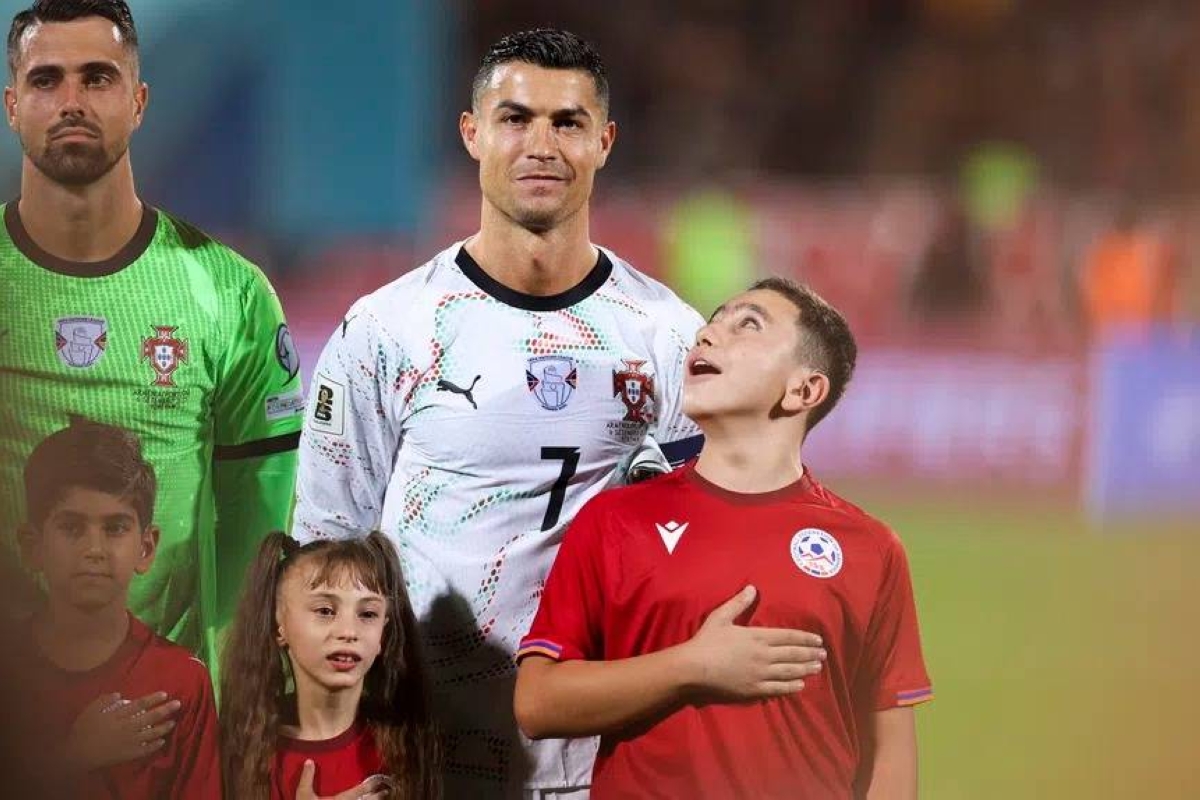 وفور دخول اللاعبين إلى أرض الملعب واصطفافهم لسماع النشيد الوطني، لم يتمالك طفل أرميني دموعه من شدة فرحته بمرافقة رونالدو، ليتفاعل معه النجم البرتغالي بابتسامة وعناق، في لقطة نالت إعجاب المتابعين عبر مواقع التواصل.