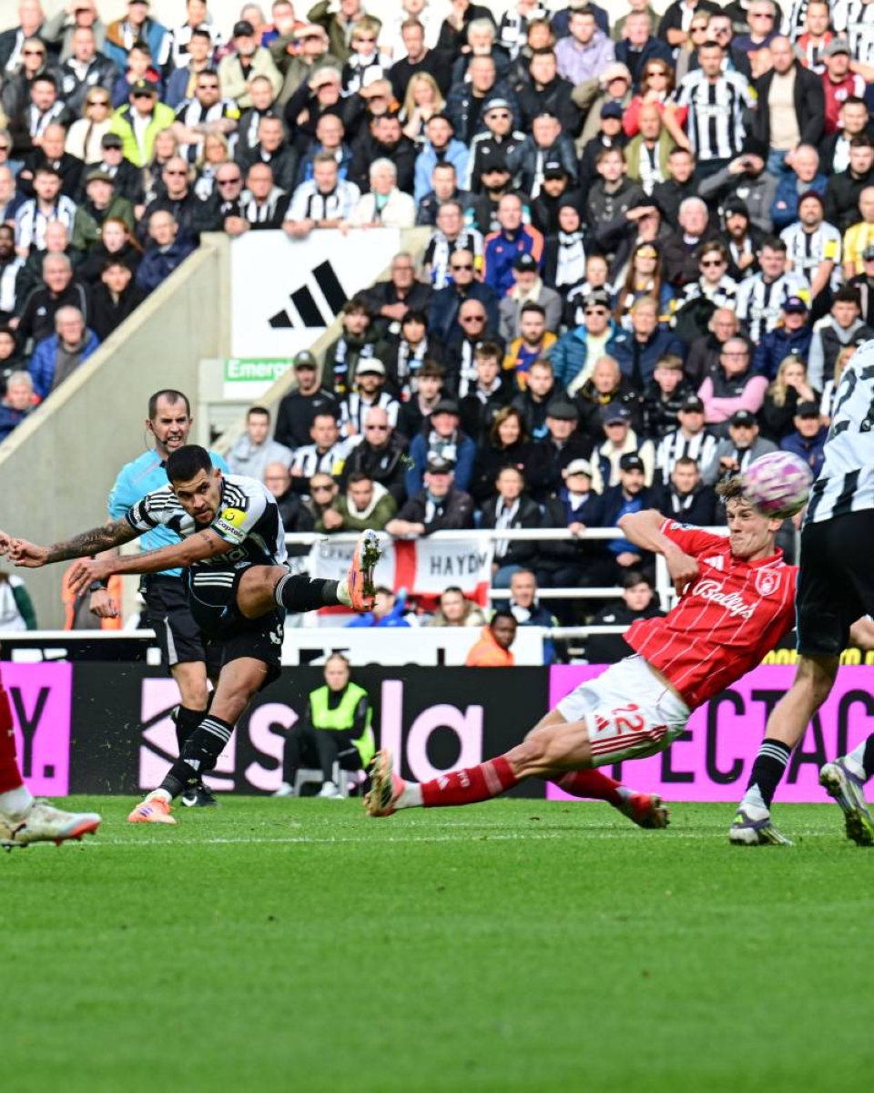 The match witnessed excitement and intensity in the second half, with Nick Vultimende striking a powerful shot that was deflected by the defense. Guimarães managed to steal the ball from Nottingham player Gibbs White and passed it to his teammate Dan Burn, who returned it to Guimarães at the edge of the penalty area, allowing the Brazilian to shoot powerfully into the top corner to the left of goalkeeper Mats Selis, scoring the first goal for Newcastle (58'). In the final minutes of the match, Newcastle was awarded a penalty, which Nick Vultimende skillfully converted into the top corner to the right of goalkeeper Selis, marking the second goal for Newcastle (84'), ending the match with Newcastle United winning by two goals to none.