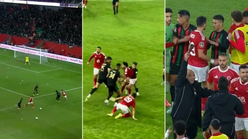 The match between the Royal Army and Al Ahly was halted due to the Moroccan fans throwing water bottles onto the pitch, and one fan threw a sharp object towards Al Ahly star Mahmoud Hassan "Trezeguet".