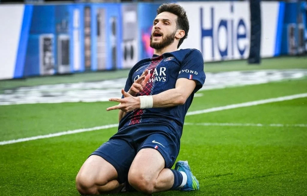 Paris Saint-Germain dominated the first half and opened the scoring through Khvicha Kvaratskhelia in the 13th minute from a penalty kick, then Désiré Doué added the second goal in the 37th minute.