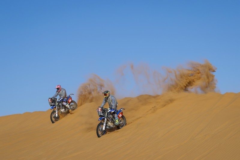وفي فئة الدراجات النارية عاد الأرجنتيني كيفن بينافيديس للواجهة بفوزه بالمرحلة الخاصة السابعة، بعد أن أنهى المرحلة السابقة بعيداً عن الصدارة، بينما جاء الإسباني خوان باريدا بورت ثانياً والنمساوي ماتياس والكنر ثالثاً، واستمر الأمريكي ريكي باربيك في تصدر الترتيب.