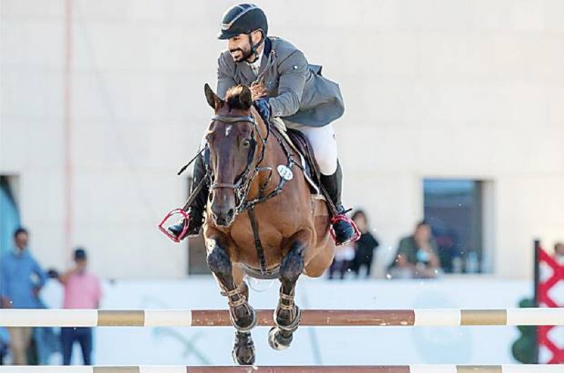 فارس يتجاوز أحد الحواجز في البطولة.