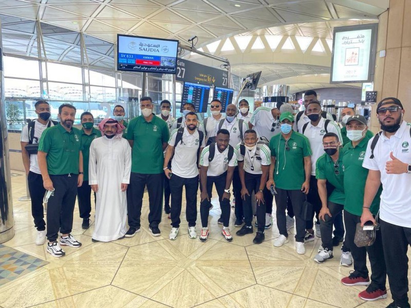 منتخب السلة قبل مغادرته مطار الملك خالد بالرياض.