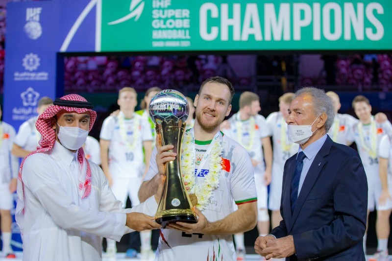 توج الأمير عبدالعزيز بن تركي الفيصل وزير الرياضة رئيس اللجنة الأولمبية العربية السعودية، فريق ماغديبورغ الألماني بلقب النسخة الـ14 من بطولة العالم للأندية لكرة اليد «سوبر جلوب 2021»، والتي استضافتها جدة خلال الفترة من 5 إلى 9 أكتوبر، بمشاركة 10 أندية تمثل قارات العالم، بتنظيم من وزارة الرياضة، بالتعاون مع الاتحاد السعودي لكرة اليد، وكإحدى مبادرات برنامج جودة الحياة. وجرت مراسم التتويج بحضور الأمير فهد بن جلوي نائب رئيس اللجنة الأولمبية العربية السعودية، والدكتور حسن مصطفى رئيس الاتحاد الدولي لكرة اليد، وفاضل النمر رئيس الاتحاد السعودي لكرة اليد، حيث تمكن ماغديبورغ الألماني من تحقيق اللقب بعد فوزه في المباراة النهائية على فريق برشلونة الإسباني بنتيجة 33-28 في اللقاء الذي جمعهما على صالة الألعاب الرياضية بمدينة الملك عبدالله الرياضية بجدة. وفي لقاء تحديد المركزين الثالث والرابع، تمكن فريق ألبورغ الدنماركي من تحقيق ثالث الترتيب والميدالية البرونزية بعد فوزه على بينيروس البرازيلي 29-34. وشهد اليوم الأخير من البطولة إقامة عدد من المباريات لتحديد المراكز من الـ5 حتى الـ10، حيث نال المركز الـ5 فريق الزمالك المصري، وجاء سادسا الدحيل القطري، ثم النور السعودي سابعاً، وثامناً سيدني الأسترالي، وحل في المركز التاسع فريق الوحدة السعودي، وأخيراً فريق كال هيت فرانسيسكو الأمريكي.